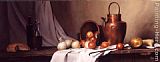 Still Life with Bread, Onions and Brass Water Jug by Maureen Hyde