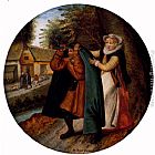 A Flemish Proverb 'A Wife Hiding Her Infidelity From Her Husband Under A Blue Cloak' by Pieter the Younger Brueghel
