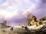 Winter Landscape with Figures on a Frozen River by Jan Jacob Coenraad Spohler