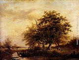 A Summer Landscape With Figures Along A Waterway by Lodewijk Johannes Kleijn