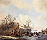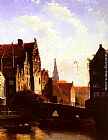 Figures on a Bridge in a Dutch Town by Jan Jacob Coenraad Spohler