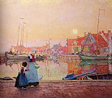 A Dutch Fishing-Village At Dusk With Figures On A Quay by Hans Herrmann