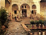 Figures in a Spanish Courtyard by Manuel Garcia y Rodriguez