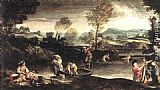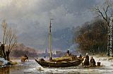 A Wintry Scene with Figures near a Boat on the Ice by Andreas Schelfhout