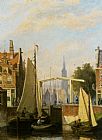 Boats on a Canal in a Dutch Town by Johannes Frederik Hulk