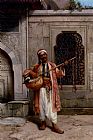 A Musician Playing Before A Mosque In Constantinople by Stanislaus von Chlebowski