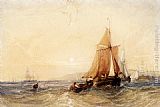 Fishing Boats Off The Coast At Sunset by William Callow