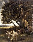 A Shepherdess with Her Flock by a Pool by Charles Emile Jacque