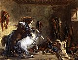 Arab Horses Fighting in a Stable by Eugene Delacroix