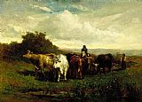 man on horseback, woman on foot driving cattle by Edward Mitchell Bannister