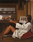 A man and woman smoking a pipe seated in an interior with peasants playing cards on a table by David the Younger Teniers