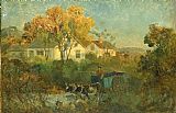 The Drinking Pool (man in cart with oxen at pool) by Edward Mitchell Bannister