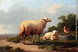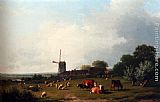 A Panoramic Summer Landscape With Cattle Grazing In A Meadow By A Windmill by Eugene Verboeckhoven
