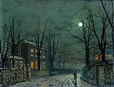 The Old Hall Under Moonlight by John Atkinson Grimshaw