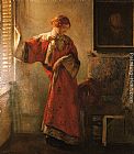 A Girl Arranging A Vase Of Flowers by Theodule Augustine Ribot