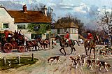 The Hunt Outside The Old Bull Inn by Gilbert Scott Wright