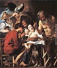 A Tavern Interior with a Bagpiper and a Couple Dancing by Jan Miense Molenaer