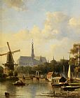 A View of Haarlem with St Bavo Cathedral from the River by Everhardus Koster