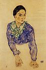 Portrait of a Woman with Blue and Green Scarf by Egon Schiele
