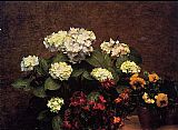 Hydrangias Cloves and Two Pots of Pansies by Henri Fantin-Latour