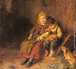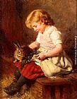 Portrait of a Young Girl Holding a Pet Rabbit by Frank Holl