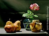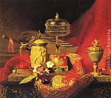 A Still Life With Iris And Urns On A Red Tapestry by Blaise Alexandre Desgoffe