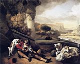 Shepherd Boys With Their Flock by Cornelis van Leemputten