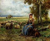 Shepherdess Watching Over Her Flock by Julien Dupre
