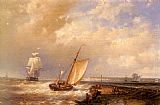 Sailing Vessels in a Calm by George Willem Opdenhoff