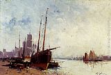Shipping In The Docks by Eugene Galien-Laloue