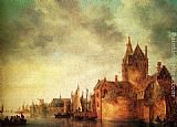 A Castle By A River With Shipping At A Quay by Jan van Goyen