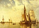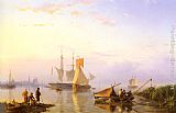 Boats Docking in an Estuary by Hermanus Koekkoek Snr