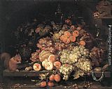 Fruit Still-Life with Squirrel and Goldfinch by Abraham Mignon