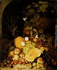 Still Life With Peaches, Plums, Strawberries And Tropical Fruits In An Architectural Miche by George Lance