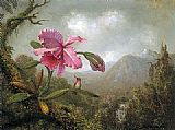 Orchid and Hummingbird near Mountain Waterfall by Martin Johnson Heade
