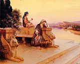 Elegant Arab Ladies on a Terrace at Sunset by Rudolf Ernst
