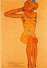 Nude woman hair-dressing by Egon Schiele
