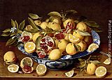 A Still Life Of A Wanli Kraak Porcelain Bowl Of Citrus Fruit And Pomegranates On A Wooden Table by Gerrit van Honthorst