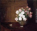 Roses in a Silver Bowl on a Mahogany Table by Julian Alden Weir