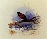 A Nepalese black headed nun in the branch of a tree by Archibald Thorburn