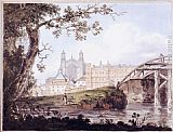 Near Canterbury a Boy on a Donkey driving Cattle along a Road, the Cathedral beyond by Thomas Sidney Cooper