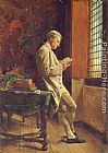 Peasants Playing Cards by a White Horse in a Rocky Gully by Philips Wouwerman