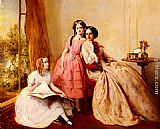 A Portrait Of Two Girls With Their Governess by Abraham Solomon
