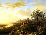 AnExtensive River Landscape With Travellers On A Path And A Castle In Ruins In The Distance by Barend Cornelis Koekkoek