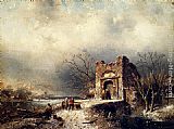 Villagers On A Frozen Path by Charles Henri Joseph Leickert