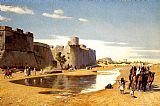 An Arab Caravan outside a Fortified Town, Egypt by Jean-Leon Gerome