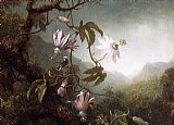 Hummingbird Perched near Passion Flowers by Martin Johnson Heade