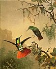 Two Hooded Visorbearer Hummingbirds by Martin Johnson Heade