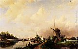 A Winter Landscape With Figures On A Frozen Waterway by Jan Jacob Coenraad Spohler