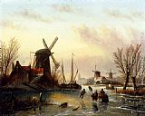A Frozen River Landscape by Jan Jacob Coenraad Spohler